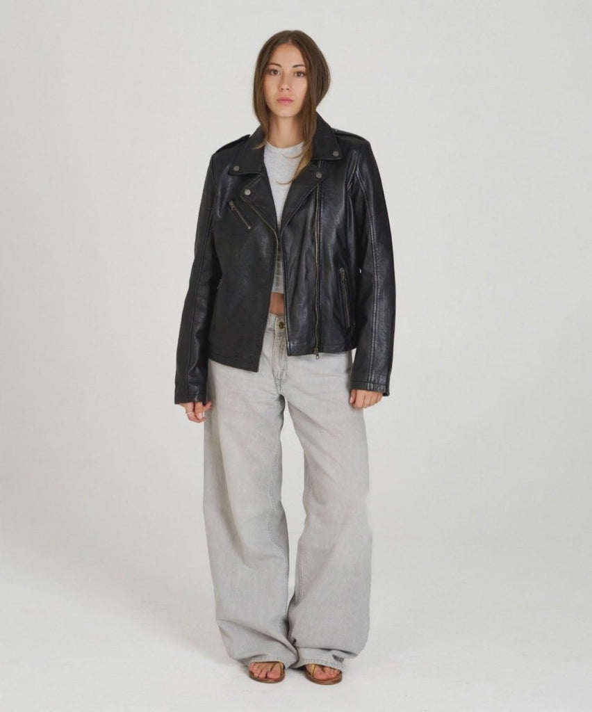 Cazadora piel biker estilo perfecto napa negra