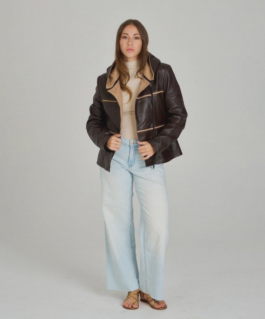 Cazadora biker piel marrón